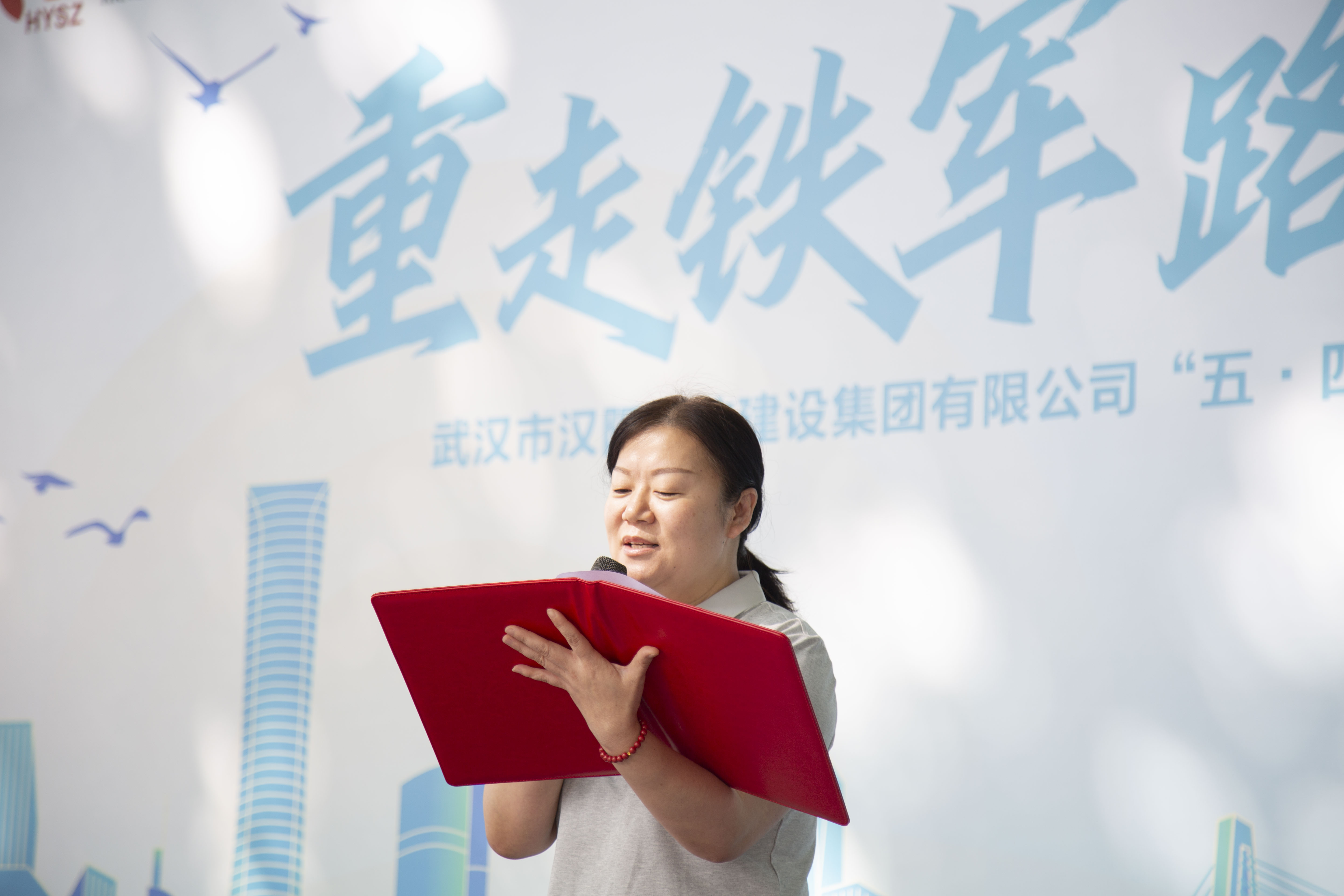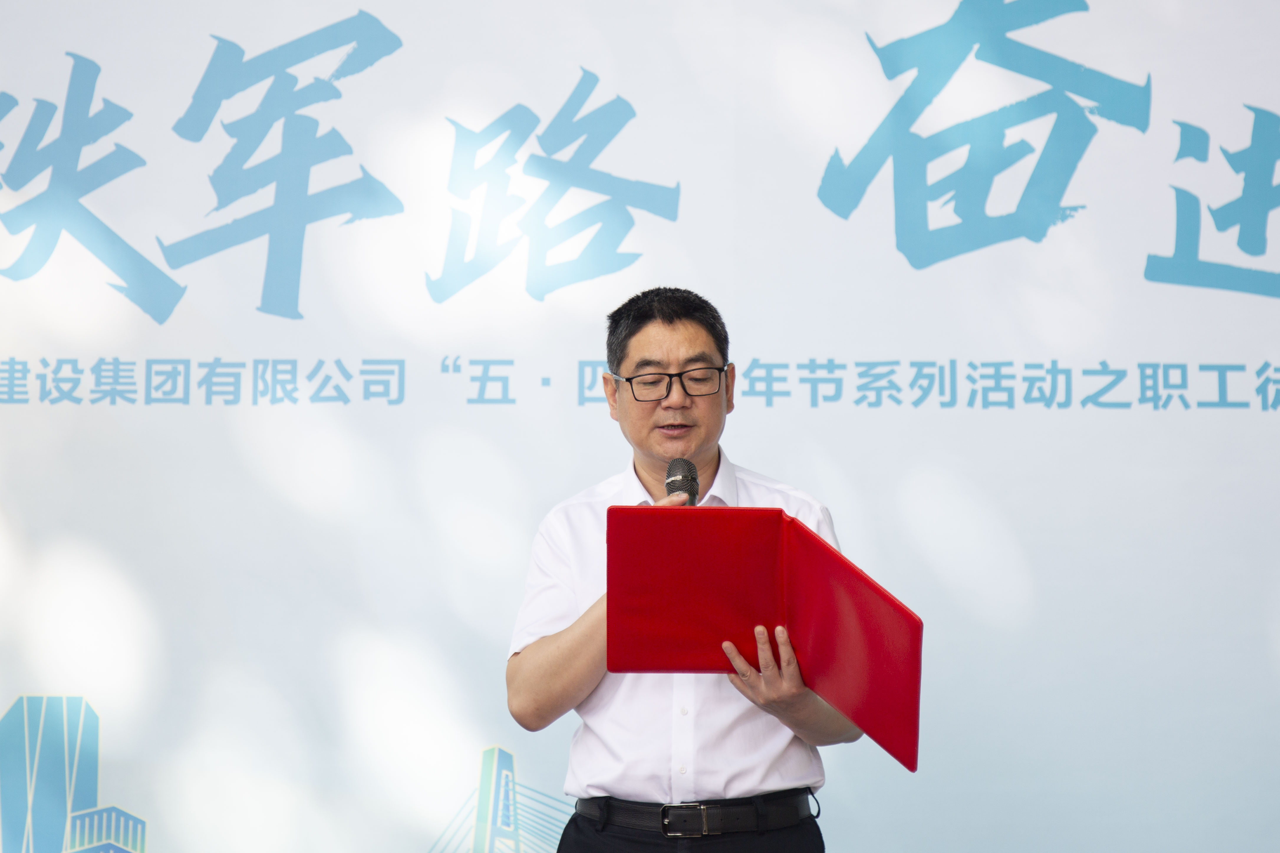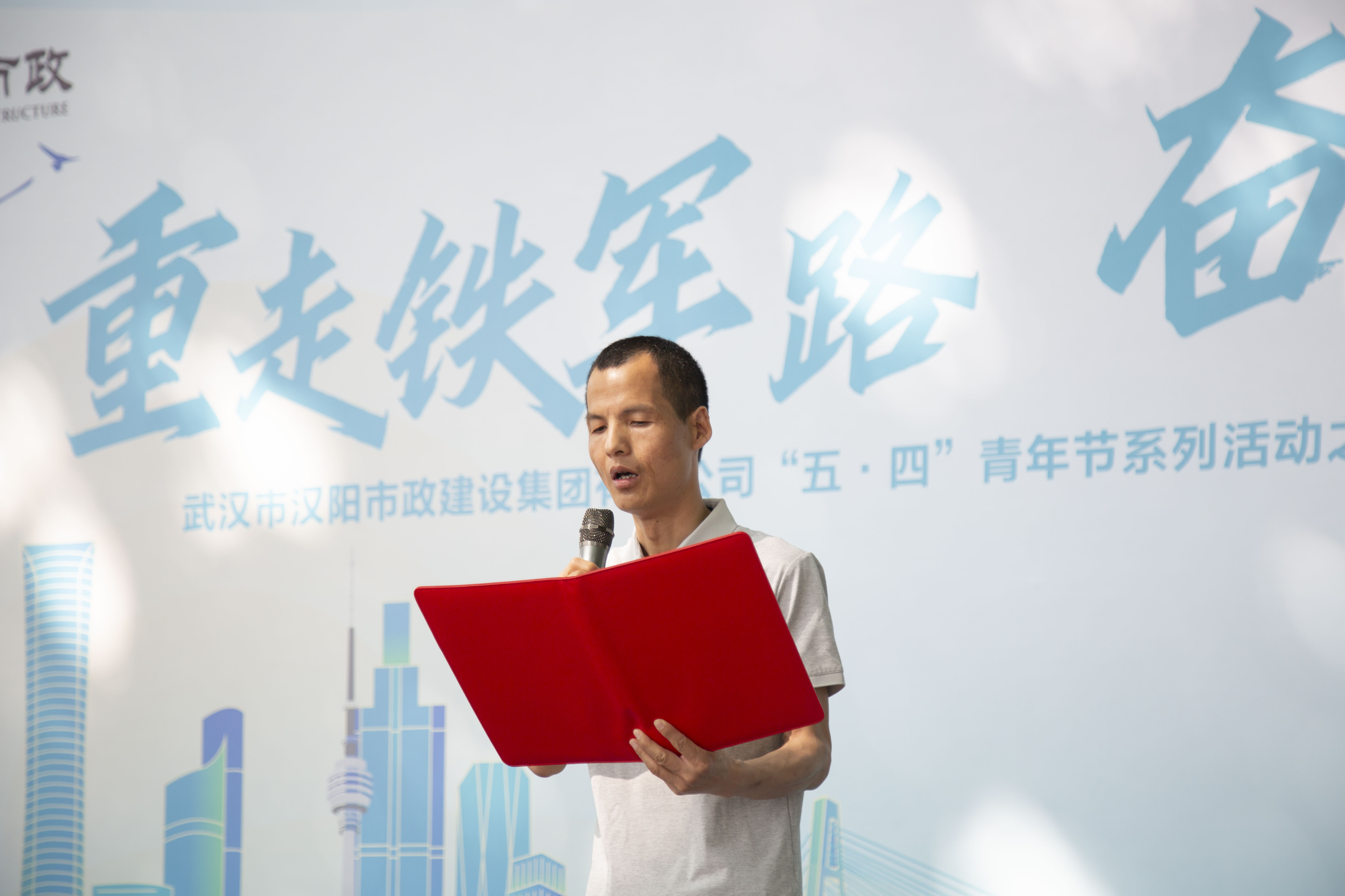 汉阳市政博宏建设党委书记、董事长兼总经理邹勇,代表劳动竞赛参赛单位表态发言。