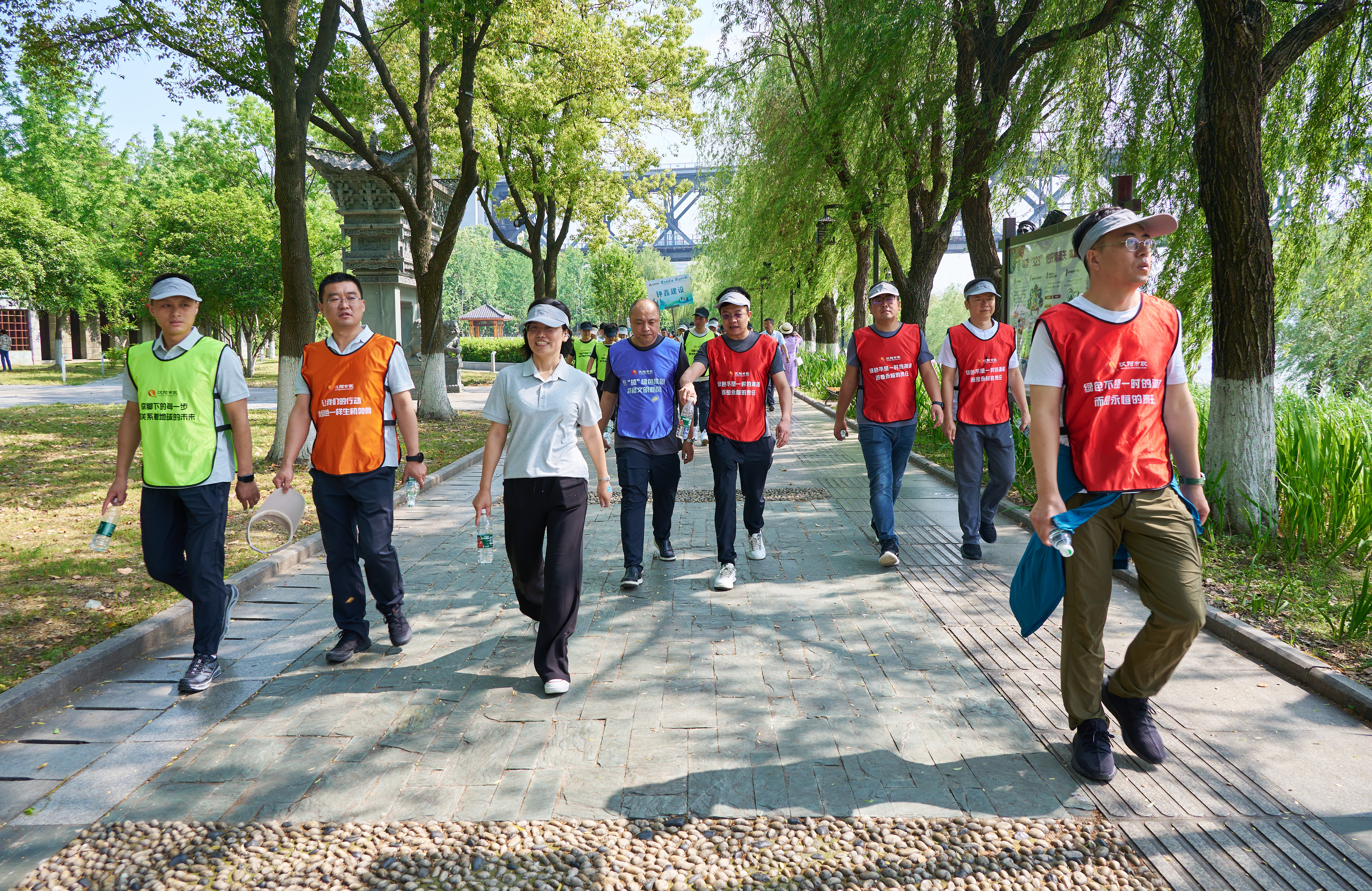 随后职工徒步活动正式开始,百余名公司职工迈开步伐,沿着南岸嘴江滩公园与汉阳江滩徒步路线行进。徒步路线全程三公里并巧妙地设置3个打卡点。徒步过程中,职工们精神饱满、热情高涨,纷纷到各个打卡点领取贴纸,现场欢声笑语不断,气氛和谐融洽。酣畅淋漓的户外徒步活动结束后,大家纷纷表示通过这次徒步活动,用脚步丈量绿色土地,用眼睛记录美丽景色,不仅锻炼了身体,更进一步激发了汉阳市政人奋勇拼搏的工作热情。