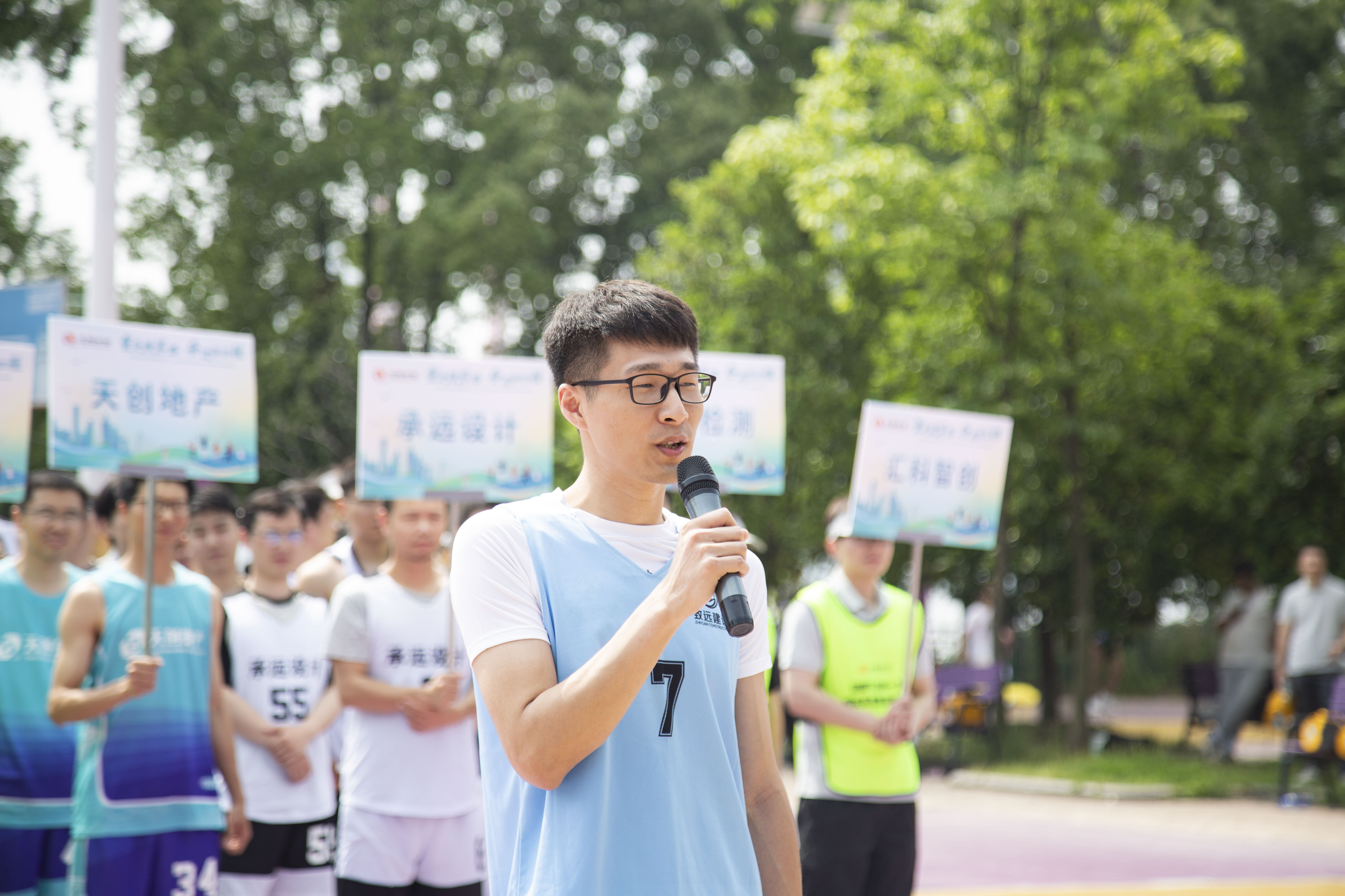本届比赛共有12支参赛队伍,分别是机关联队、致远建设队、天创建设队、博宏建设队、钟鑫建设队、五公司队、环城运维队、琴台生态队、天创地产队、承远设计队、汇科检测队、汇科智创队。开幕式现场氛围炽热,啦啦队为观众们带来精彩舞蹈。