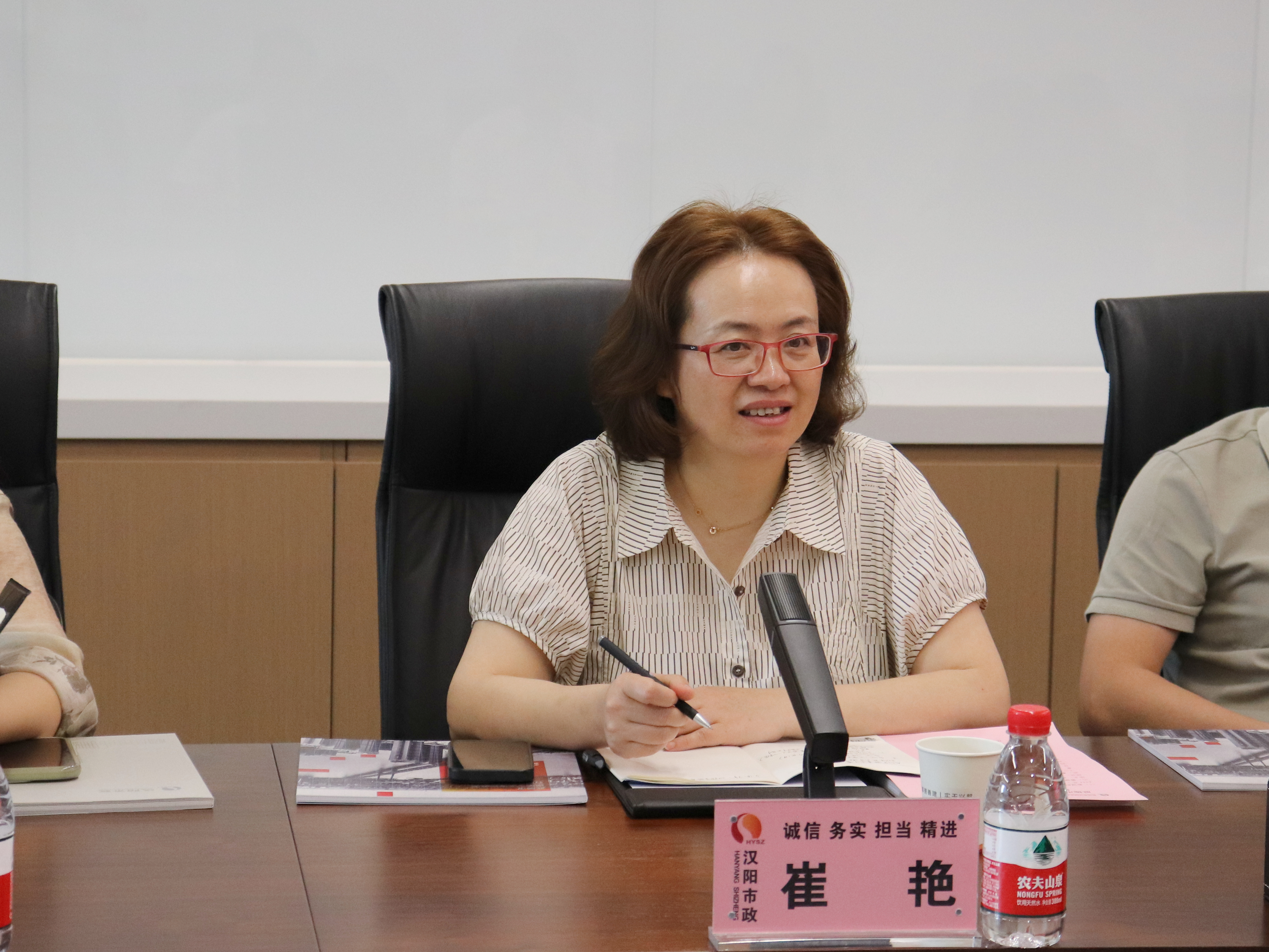 5月16日,恩施市国有资产监督管理局崔艳一行莅临汉阳市政建设集团考察交流,汉阳市政集团公司副总经理卢永红、汉阳市政设计院总经理朱成煜陪同。