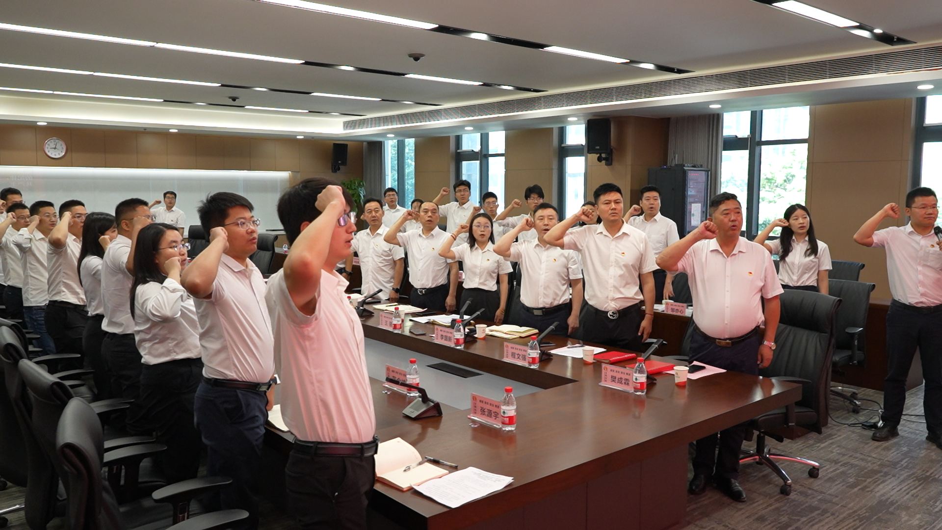 “我志愿加入中国共产党,拥护党的纲领……”,在许超同志的领誓下,全体党员举起右拳,重温入党誓词、再忆入党初心。