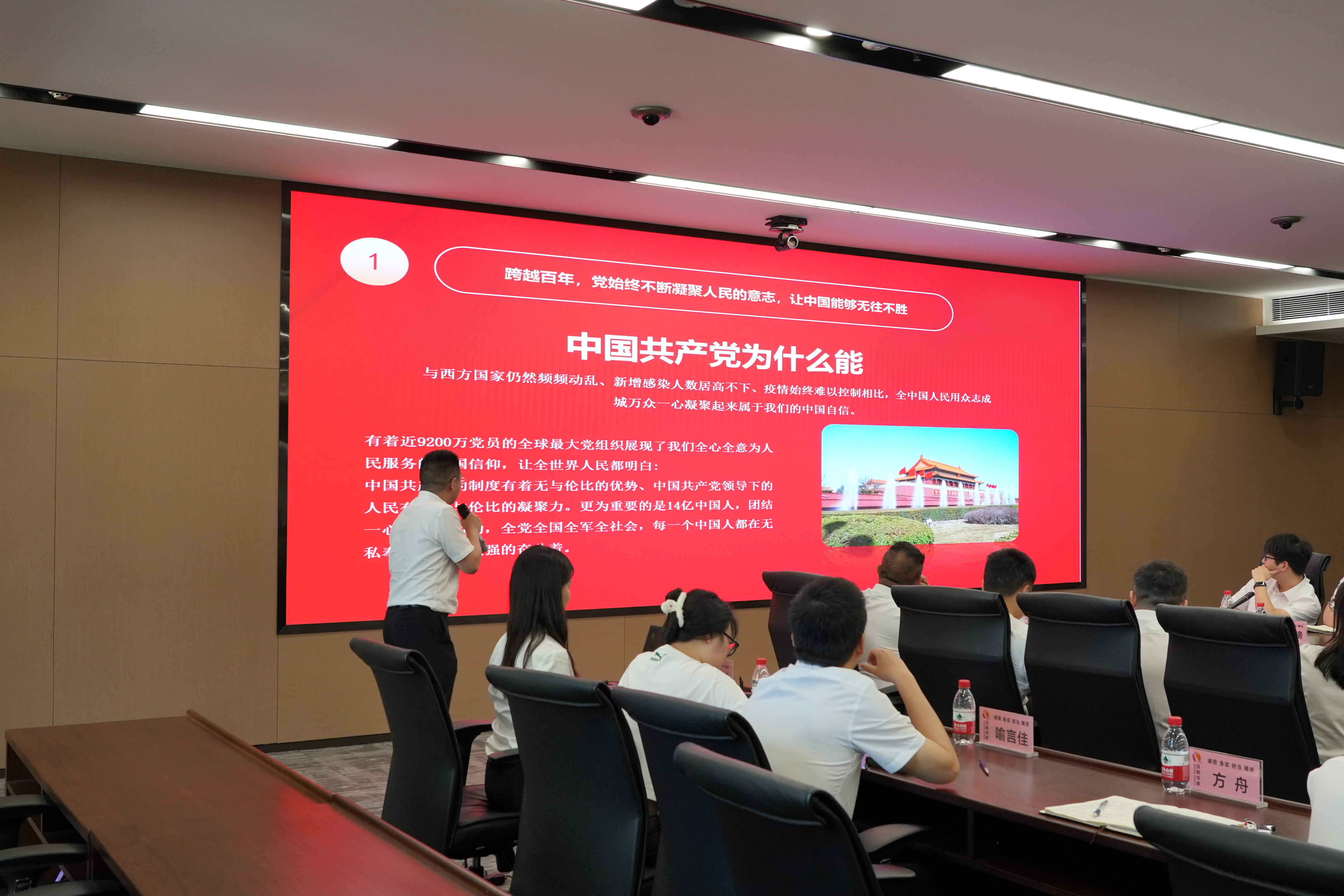理论宣讲员刘坤同志作《感悟百年党史蕴含的真力量》宣讲,从党凝聚人民意志、党始终敢于牺牲自己、党带领人民军队从胜利走向胜利三个方面帮助与会人员重温百年党史,理解“中国共产党为什么能?”,从党史中汲取前进的动力,明确奋斗的方向。