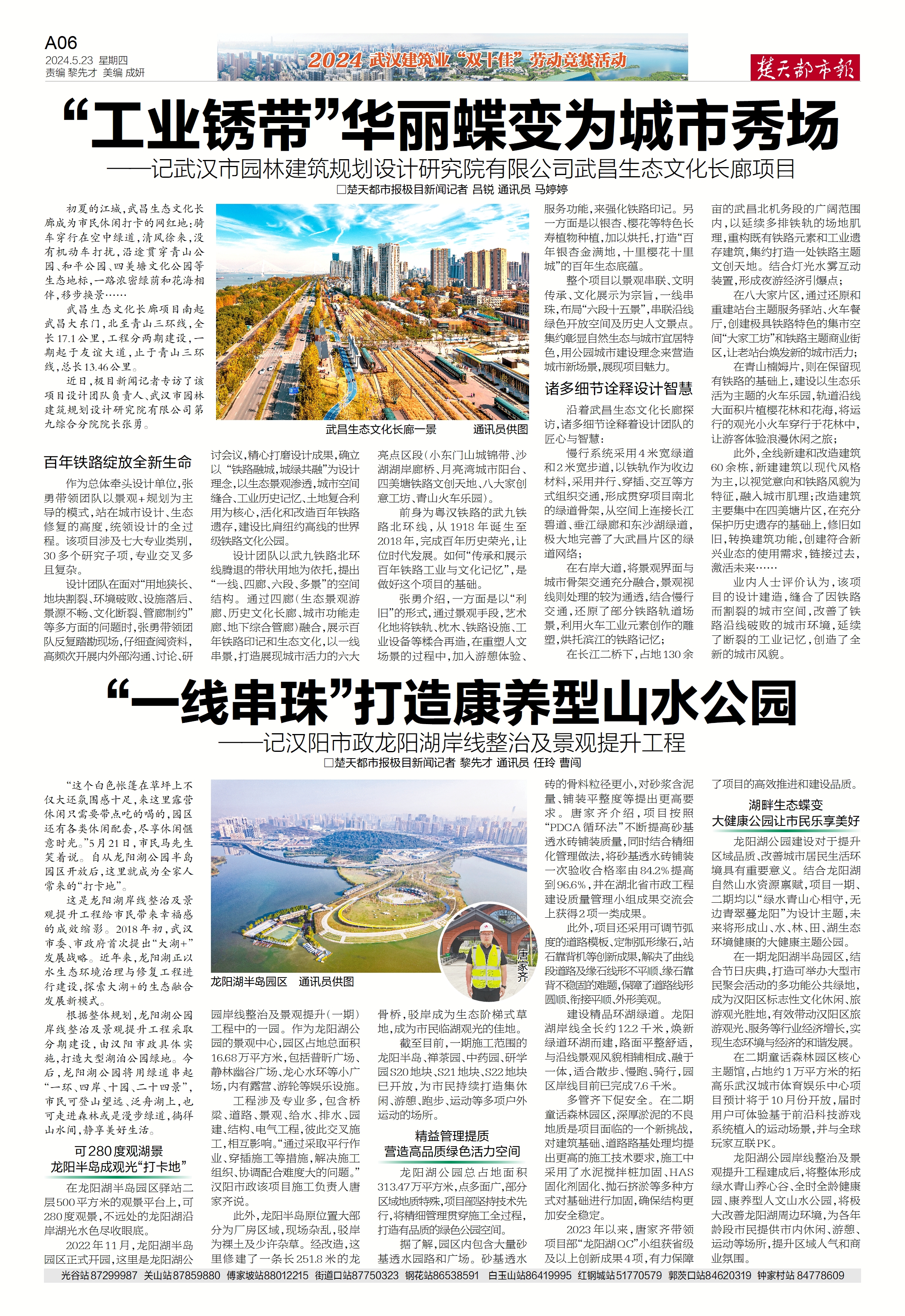 楚天都市报推出《“一线串珠”打造康养型山水公园——记汉阳市政龙阳湖岸线整治及景观提升工程》专版报道。