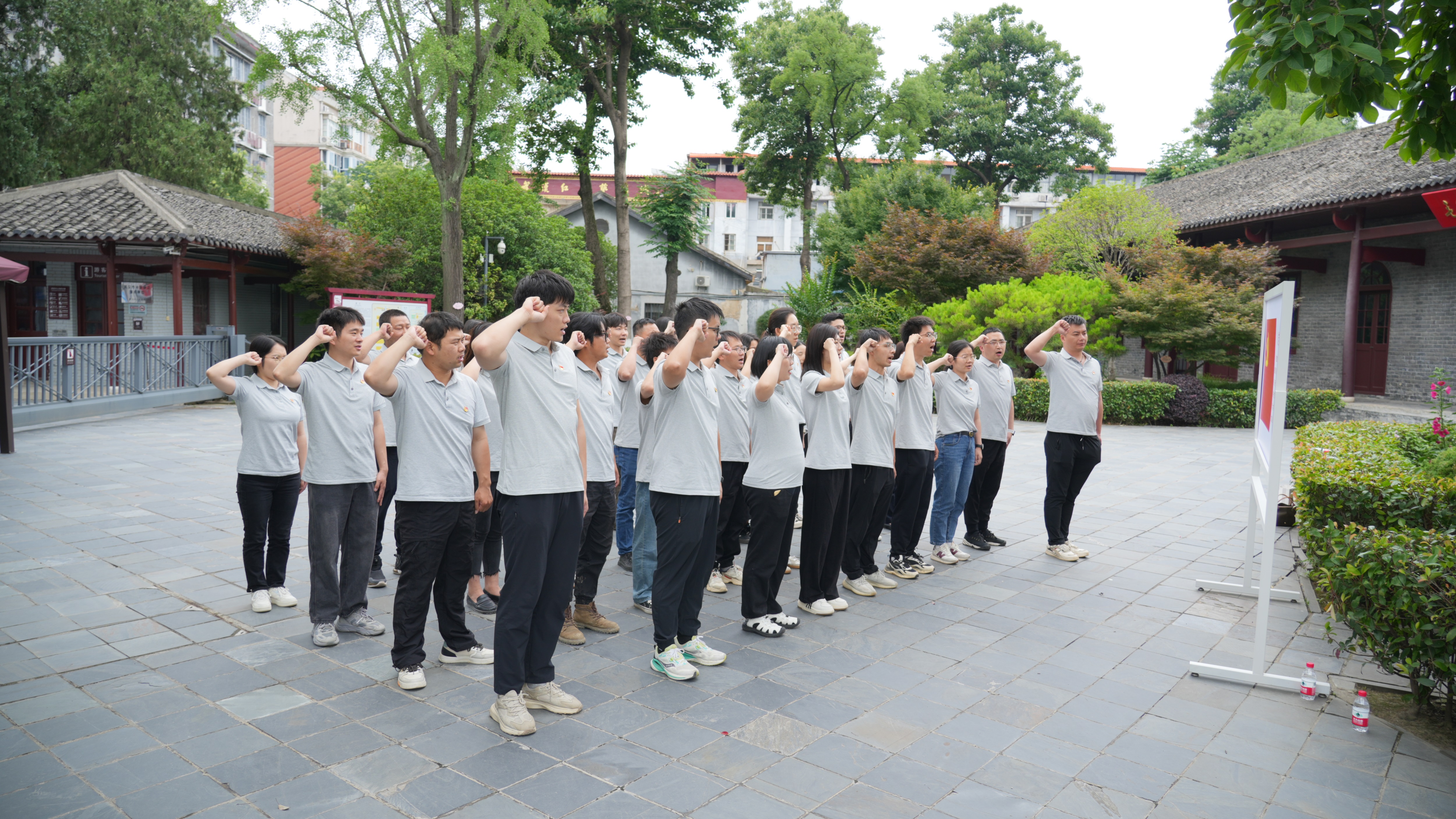 在中央农民运动讲习所旧址纪念馆的红色牌匾前,全体党员在陈谦同志的带领下,紧握右拳,重温入党誓词,以铿锵有力的庄严宣誓再次向党作出不忘初心、牢记使命,始终坚守共产党员政治本色的承诺。