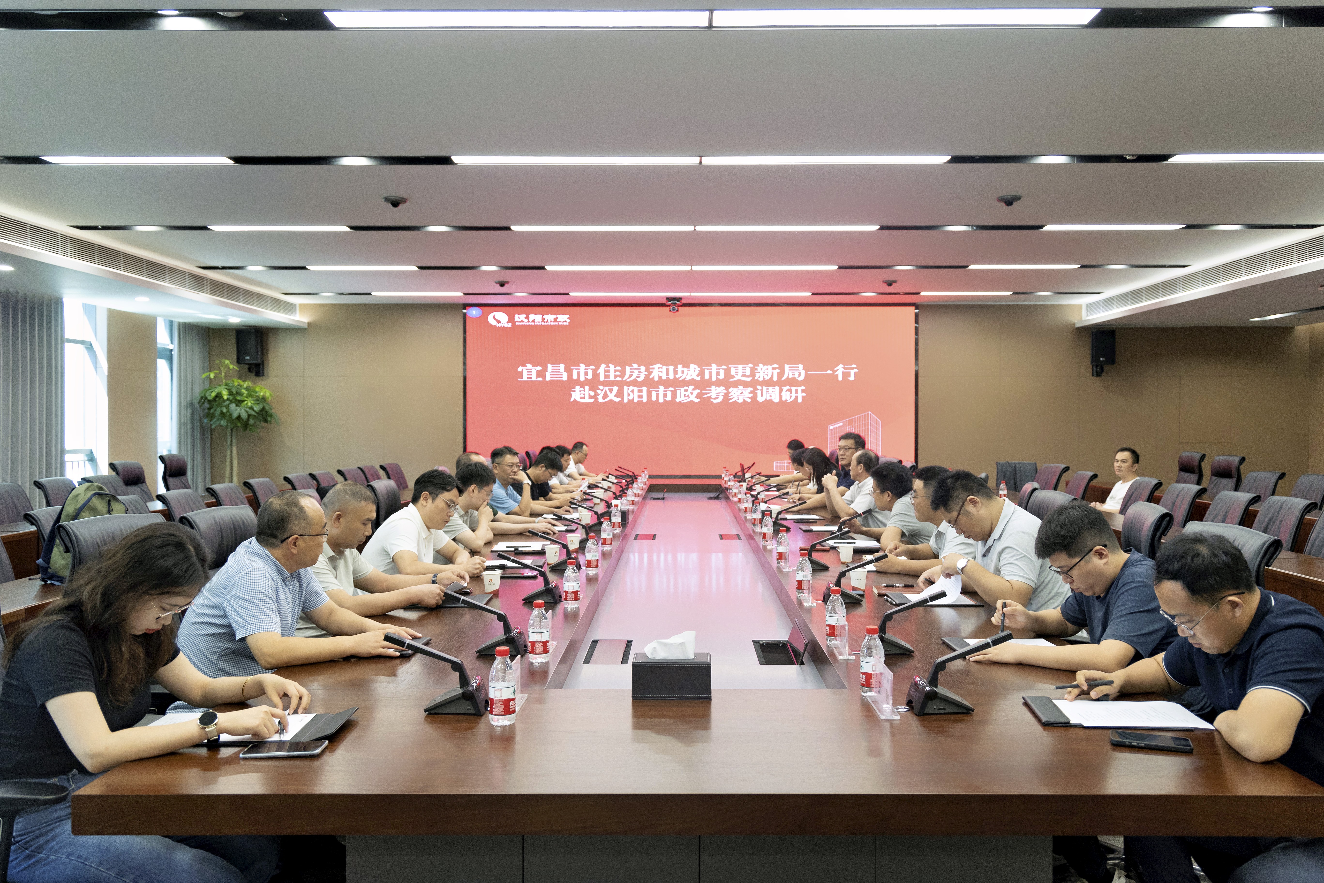 8月5日,宜昌市住房和城市更新局党组成员、副局长周大红带队赴汉阳市政建设大厦进行调研交流活动。宜昌市房地产业协会副会长、秘书长曹洋,武汉市房地产开发协会会长张汉培,汉阳市政常务副总经理、天创地产董事长钱涛,天创地产总经理李军伟陪同调研。