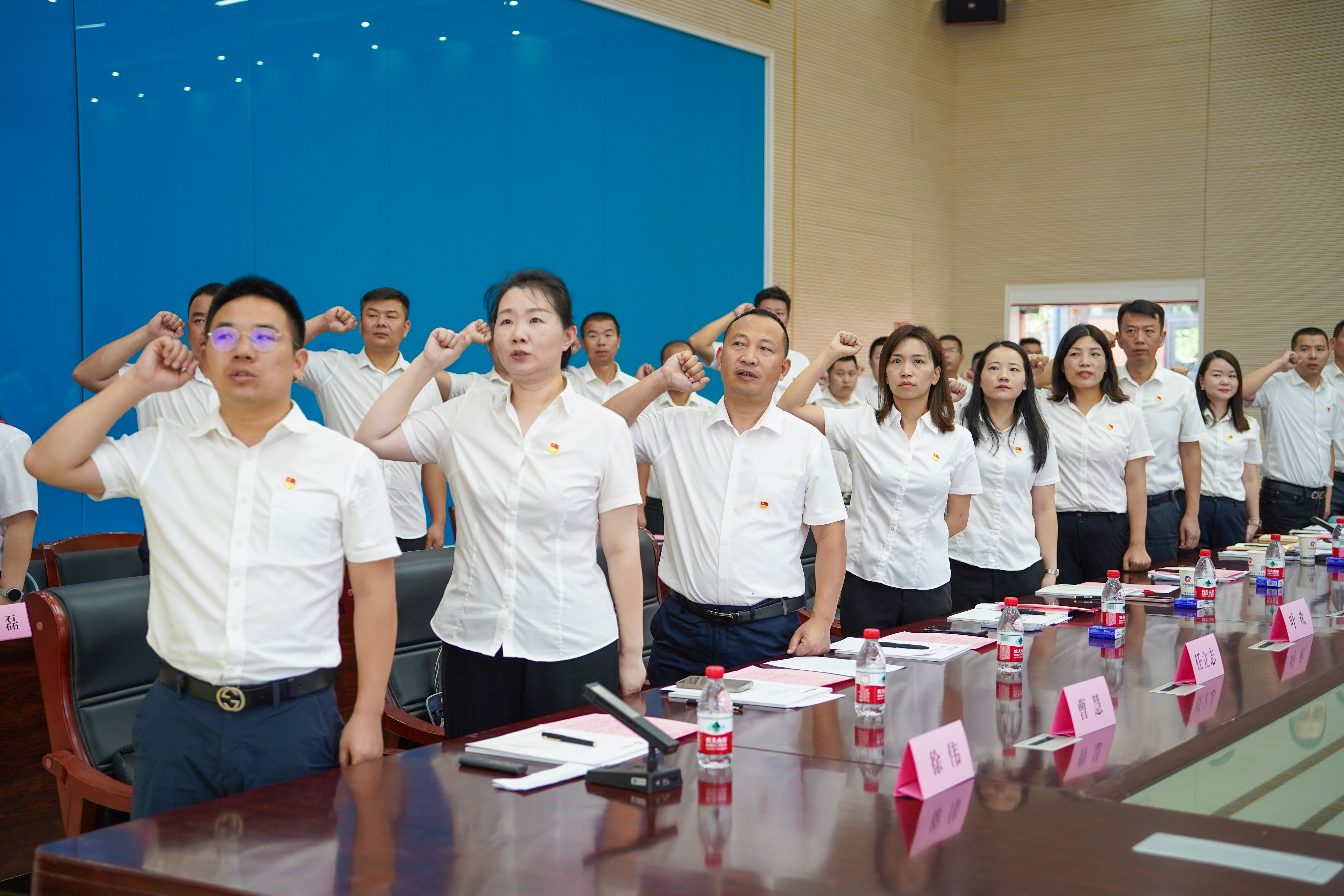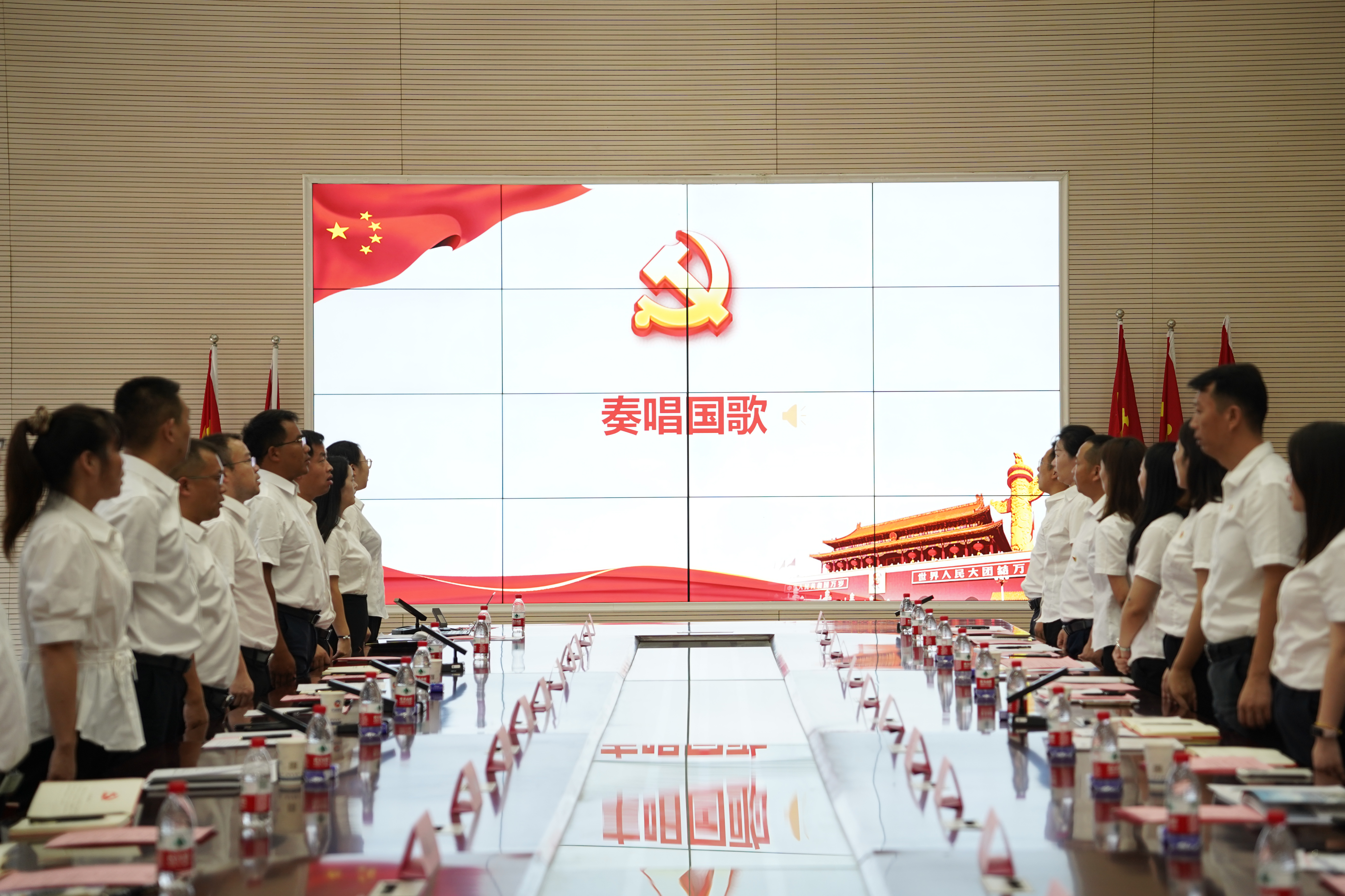 全体党员肃立,奏唱国歌。刘吉祥同志领誓,重温入党誓词。