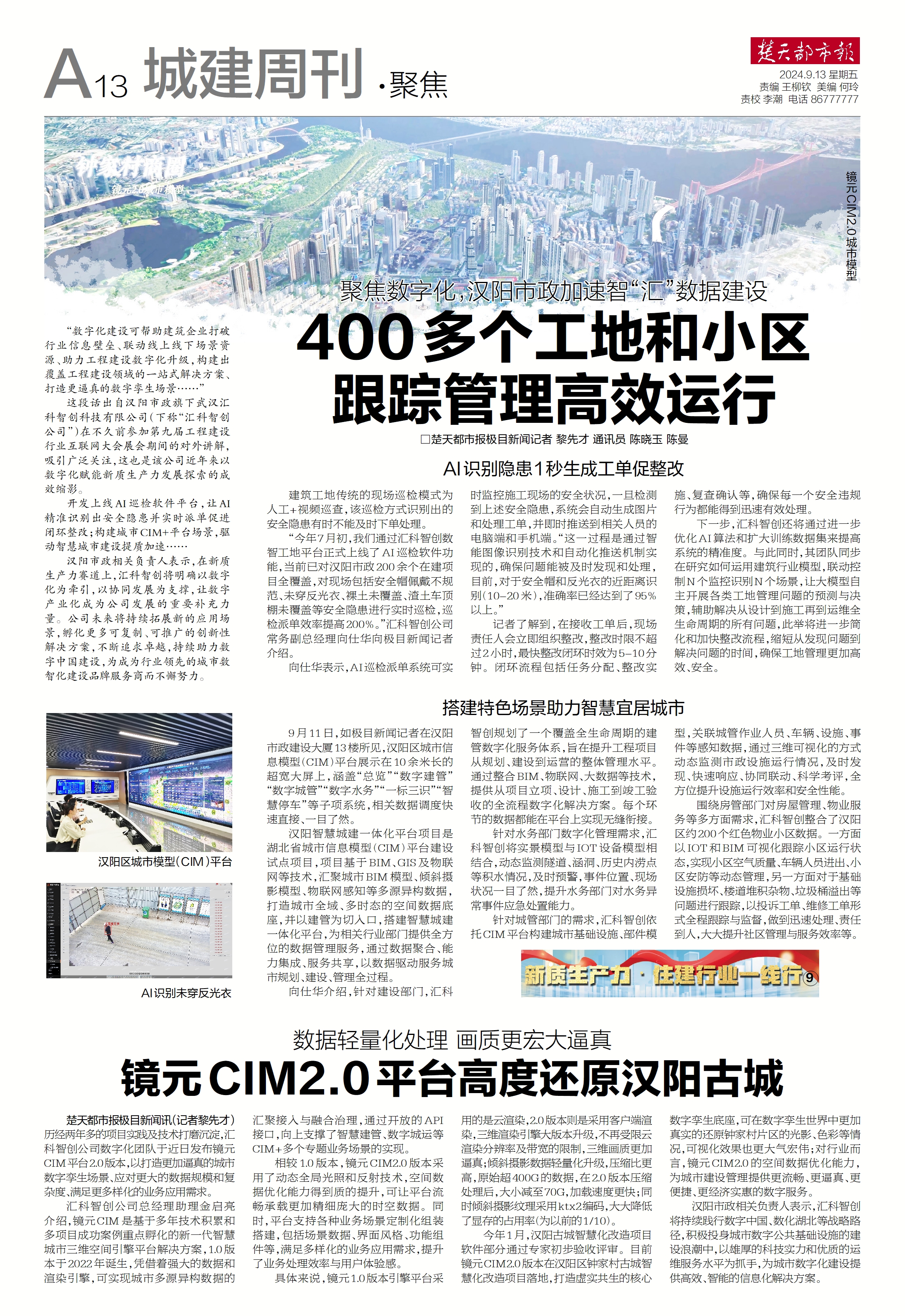 楚天都市报:聚焦数字化,汉阳市政加速智“汇”数据建设,400多个工地和小区跟踪管理高效运行