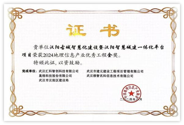 除本次荣膺“金标杯”特等奖,该项目在此前已获得2024中国地理信息产业优秀工程金奖、2023年武汉科技创新大赛月度分赛一等奖等荣誉,并入选住建部新城建展览展示中心主展案例、2023年“中国建造”品牌创新实践案例、中央网信办2023年数字化绿色化协同转型发展优秀案例。